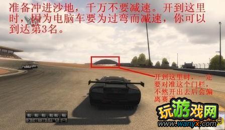 我发现在开始后有两个弯道可以加以利用,走沙地可以很好的达到超车的效果。而且屡试不爽。详细过程见图